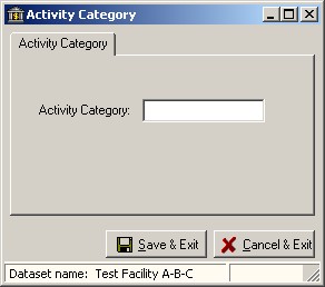. The new and edit activity category screen is a simple single prompt screen as in the example below:
