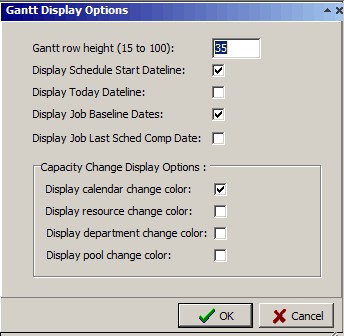 Gantt row height (15 to 100). This option enables you to select the height of each of the Gantt chart rows. Valid entries are from 15 to 100. The default is 35.