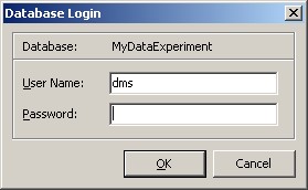 If you click cancel during the Database Login you will still gain access to DMS, but you will not have access to any information. This method enables you to gain access to DMS and select a dataset in the event that another users was using your computer and accessed a dataset that you do not have access to, if the last dataset you accessed was an old dataset that has been deleted, etc.