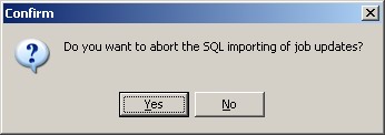During the import you can abort the process by clicking the Abort button. If the Abort button is clicked, DMS will as you to confirm the abort by displaying the following window. If your click Yes, the import process will be aborted. If you click No, the abort will be ignored and the import will continue.