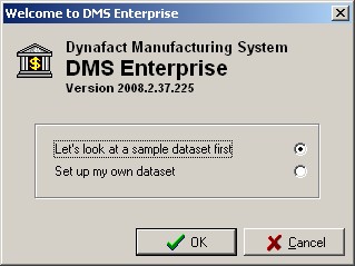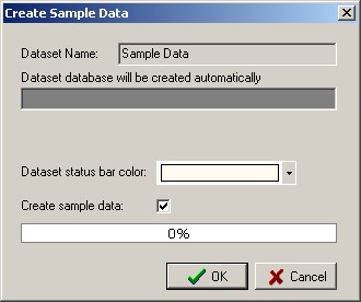If you choose to setup your own dataset instead of looking at sample data, DMS will ask you to enter the dataset name, the database name (if you do not have permission to create your own SQL databases), and the "Create sample data" will be unchecked. If you click on OK, the new dataset will be created.