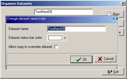 If you want to change the dataset name, color, or allow a copy to overwrite the data select the dataset you want to change from the list and then click on the edit button. The following window appears:
