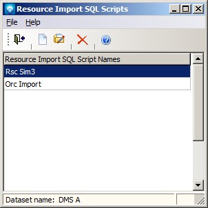The Resource Import SQL Scripts enables you to define SQL scripts to import resources into DMS.  This import can be used to add new resources to DMS and to change existing resources.  Before you add the SQL scripts, one or more connection strings must be defined.  Any number of SQL import scripts can be defined.  For help writing SQL scripts in DMS please see Hints and Tips Writing SQL Scripts in the help documentation.  For details on the SQL columns required for the import, please see SQL Resource Import Columns Required.