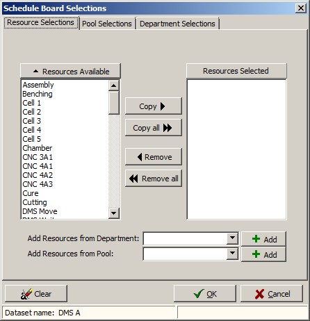 - Resource Selections File | Resource Selections enables you to select new resources to be displayed in the schedule board.