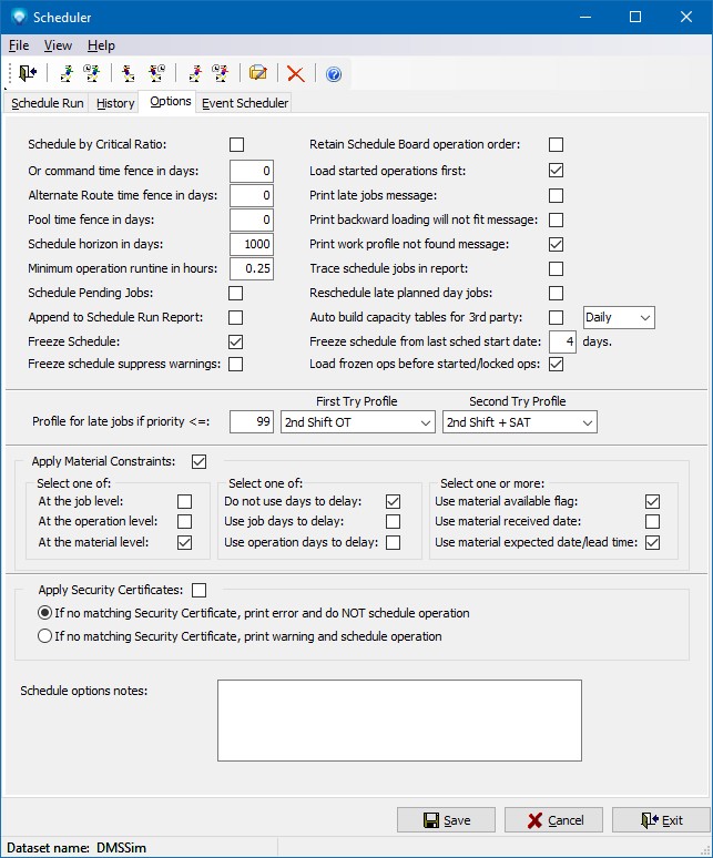 The options entered are the defaults to use for each schedule run. When you perform a schedule run, you can change these default options for that one particular run. the options are as follows: