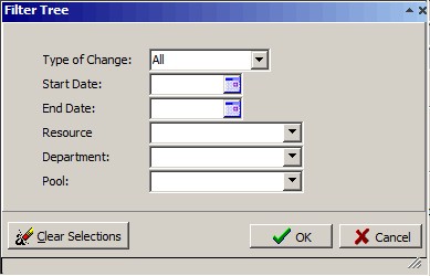 You can use the Filter Tree button to select the calendar/capacity changes. If you click on the Filter Tree button the following window appears enabling you to enter the filter criteria: