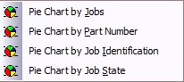 The Capacity Graph has a command where if you right click on a bar, The following popup menu appears enabling you to select a Capacity Pie Chart showing the hourly load by jobs, job identification, part number or job state. Once the pie chart has been displayed, you can switch between any of the four views: