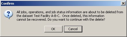 To execute this command, select File | Datasets | Clear Selected Tables from the general menu. Confirm the deletion of jobs, operations and job status by pressing OK.