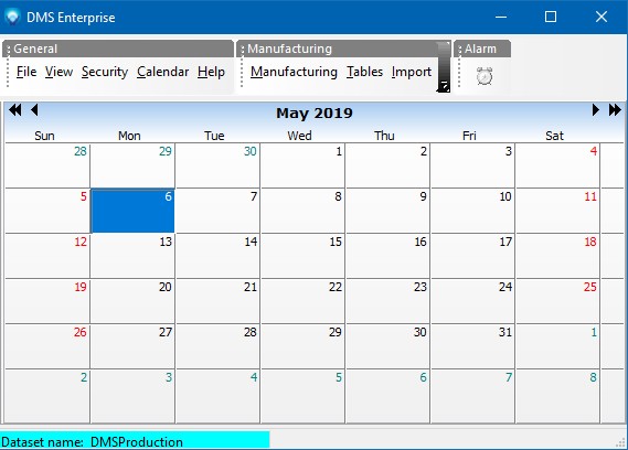 The example below shows what the main calendar screen looks like if you selected the color cyan for the dataset status bar color: