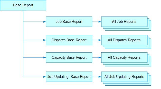 Further, each DMS Report Type has its own template base report. All of these reports are inherited from the one DMS base report. The DMS reports inheritance is as follows: