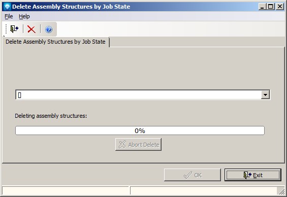 The Delete Assembly Structures by Job State can also be executed in a batch or command file. See Auto Delete Assembly Structures by Job State for more information.