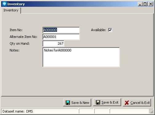 If a new inventory item is being entered, you can click on the Save & New button to save the entry and keep this screen open to add another new inventory item. Otherwise, click the Save & Exit button to save the entries or click Cancel & Exit to cancel the entries.