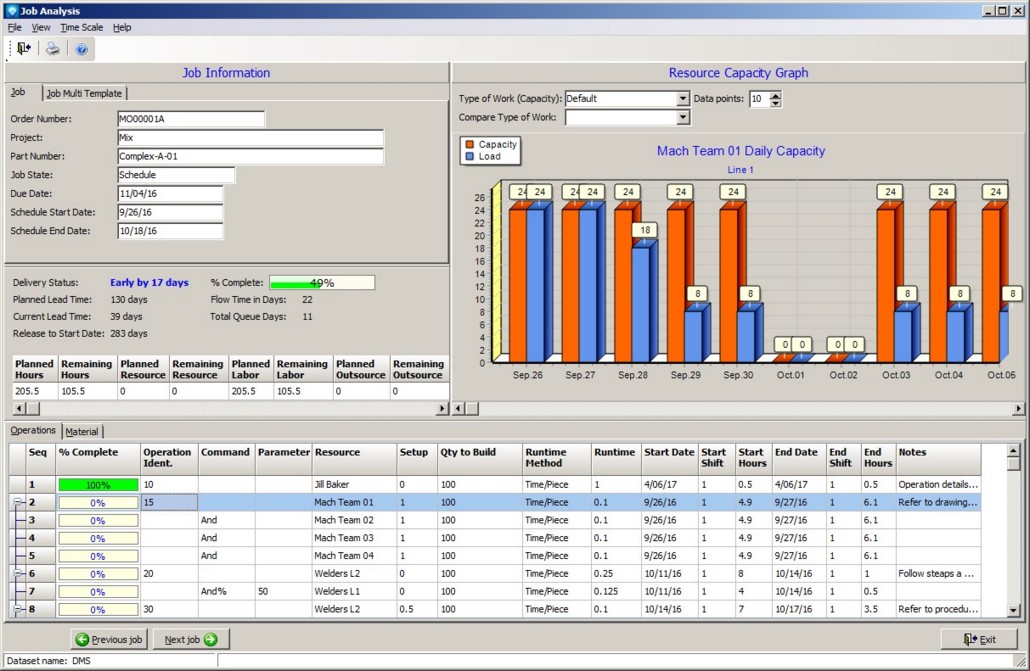 Job Analysis enables you to look at the details of a job and its operations. Queue times are displayed to help locate bottlenecks.