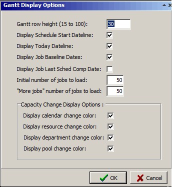 The Job Gantt Chart has the following options that are selected from the View | Gantt Display Options: