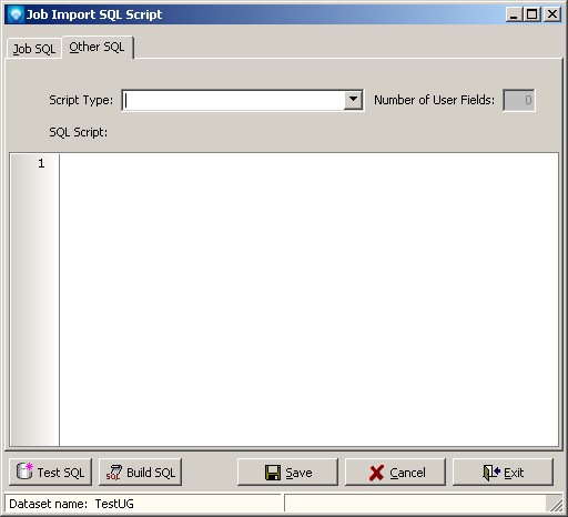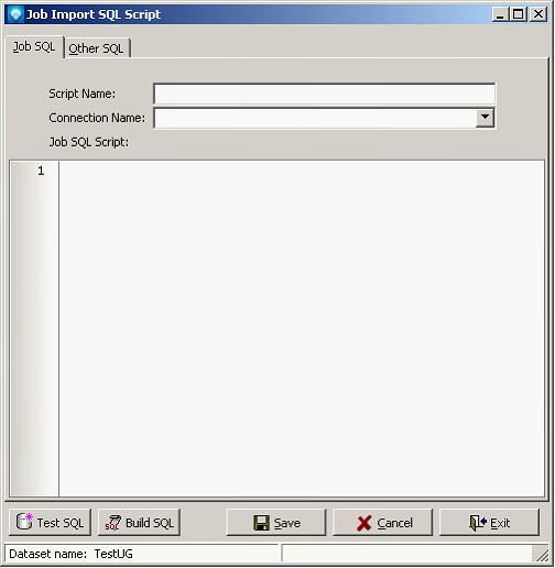 If New was selected, the following window appears. Note that if an Edit was selected, the current job import SQL script appears in the window: