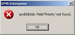The example script below shows the job SQL required to copy data from the job view table (VWJob) in one DMS database into another DMS database: