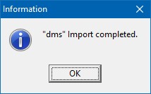 When the import is finished, DMS displays a message similar to the example below: