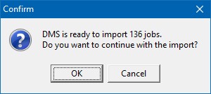 Click OK to start the import or click Cancel to cancel the import. If you click OK, DMS will start the import and display the import status on the screen as in the example below: