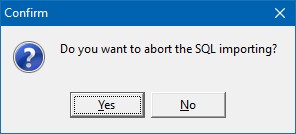 During the import you can abort the process by clicking the Abort button. If the Abort button is clicked, DMS will as you to confirm the abort by displaying the following window. If your click Yes, the import process will be aborted. If you click No, the abort will be ignored and the import will continue.