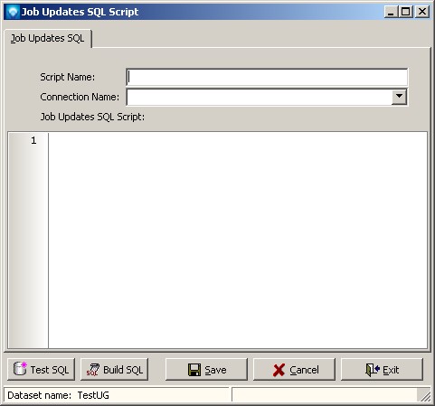 If New was selected, the following window appears. Note that if an Edit was selected, the current job updates SQL script appears in the window: