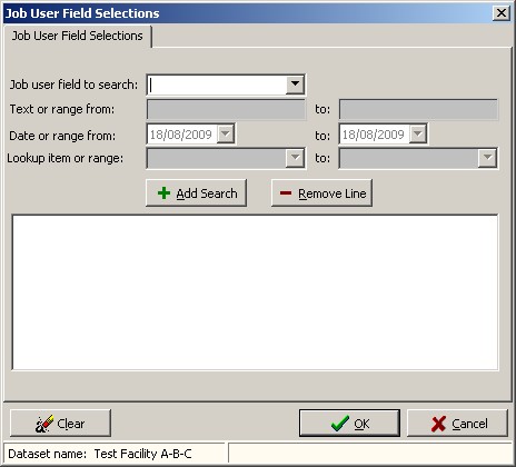 Job User Field Selections are used to define search criteria for the job user fields that you have defined in DMS. To access job user field selections, click on the Job User Field Selections button on Manufacturing Orders: