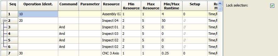 The Lock Selection feature allows users to lock the number of resources used in a Min/Max relationship, in a OR relationship, or to lock a resource selection from a pool. For example, the router below shows that 5 resources were selected with a Min/Max command. If the lock selection feature is chosen then the system will continue to schedule the same 5 resources selected. Note that to display the lock selection, the Options button the the Operations Tab must be turned on.