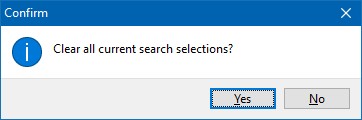 To clear your current search criteria, click on the Clear Selections button. DMS will confirm the clearing of selections by displaying the following confirmation window: