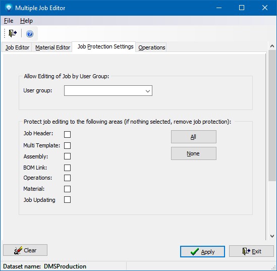 You can also use the All button to select all areas of the job to be protected, or the None button.