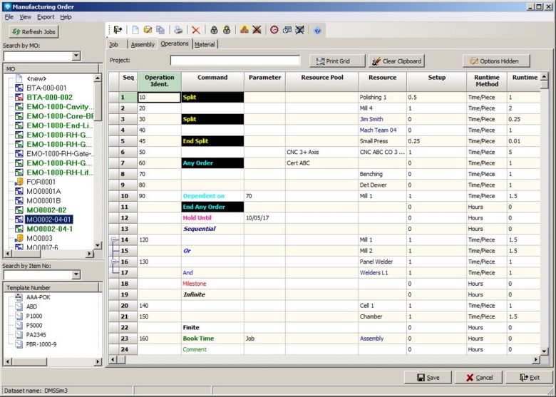 The Operation Grid Selections in Manufacturing Order (job details) is used to select what operation fields you want to appear in the operation grid.