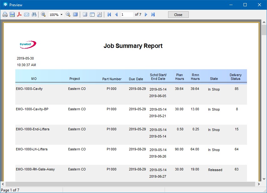 Preview Report displays the selected report and enables several commands.