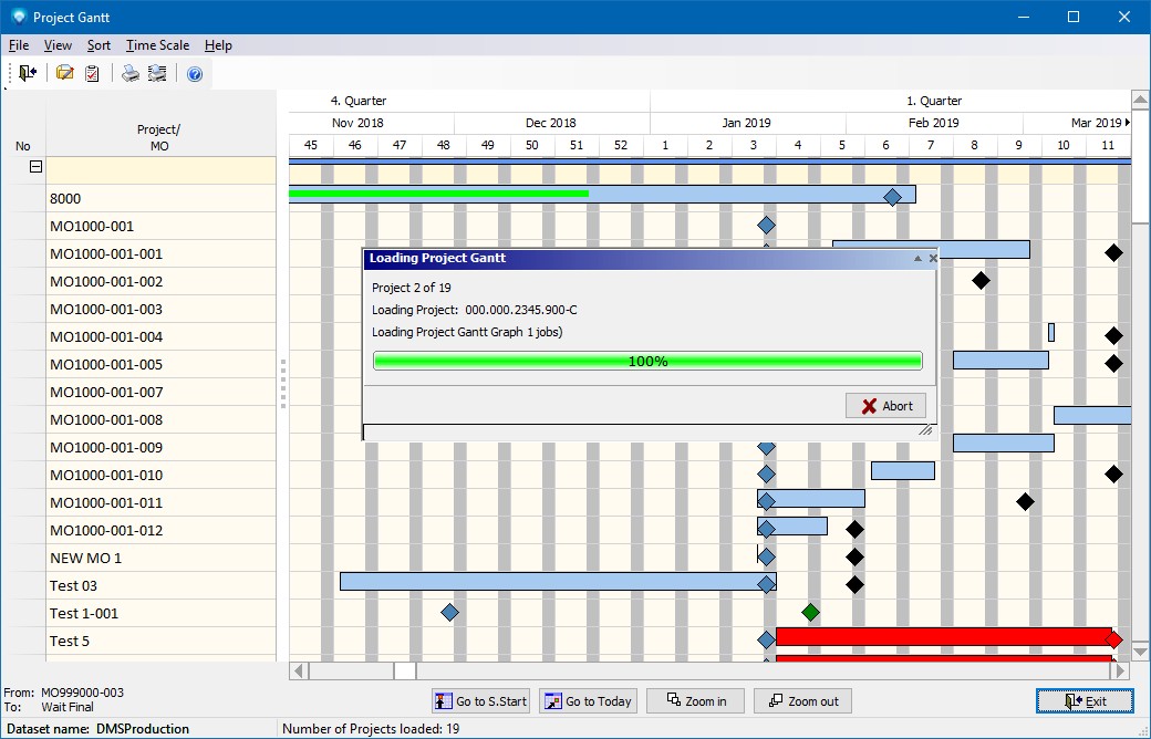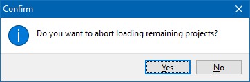 You can abort the loading of projects and jobs into the Project Gantt by clicking on the Abort button. If Abort is selected, DMS will ask you if you want to abort loading the remaining projects: