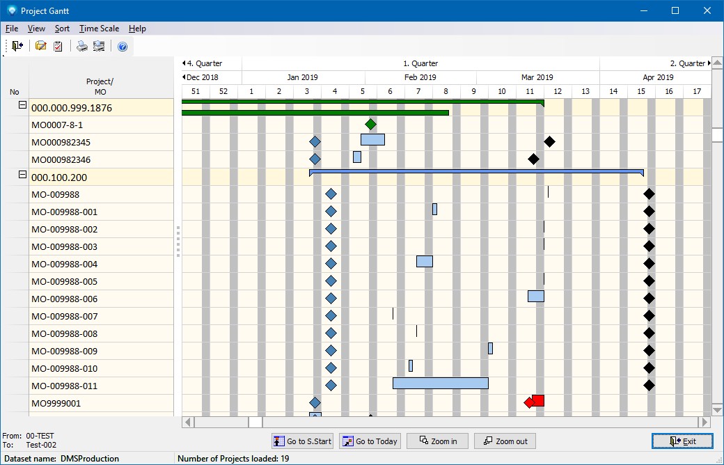 Once the selected projects and jobs have been loaded, the Project Gantt chart is displayed: