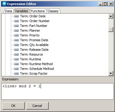This expression tells the report engine that when the remainder of the line number divided by 2 equals 1, the expression will be true. Click OK to save the expression.
