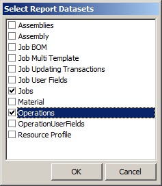on the Designer Menu Bar and select the Detail Data Band. A popup window will appear showing the current selected datasets for this report. Highlight Operations, as in the example blow, and click OK: