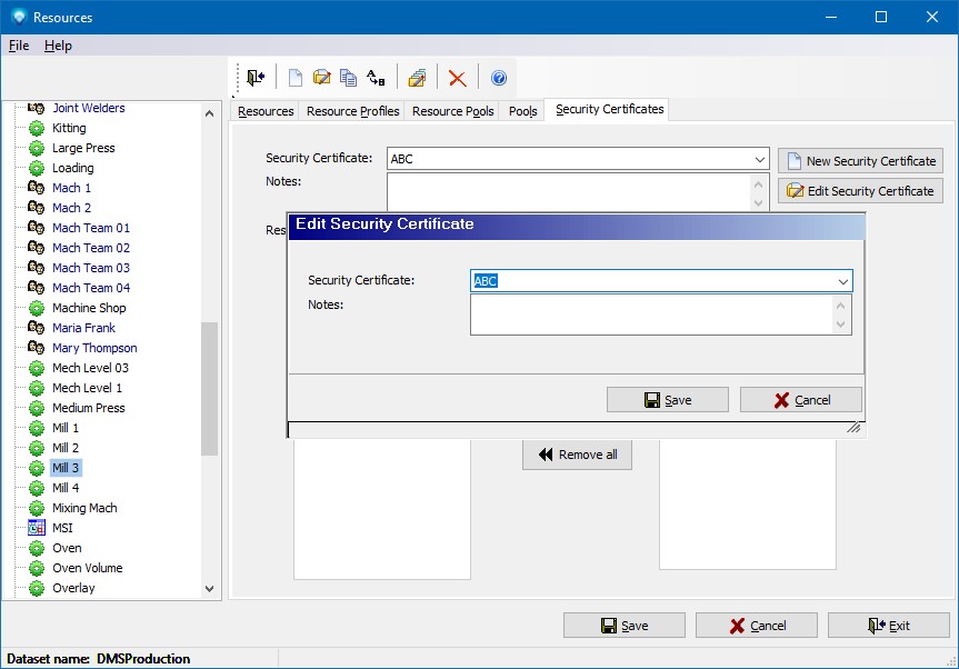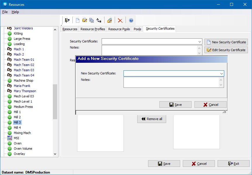 Security Certificates enables you to setup resources that are authorized to work on certain projects. To identify the resources that can work on jobs, the Security Certificates tab in Resources is used.