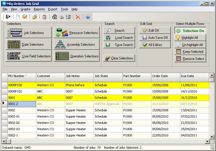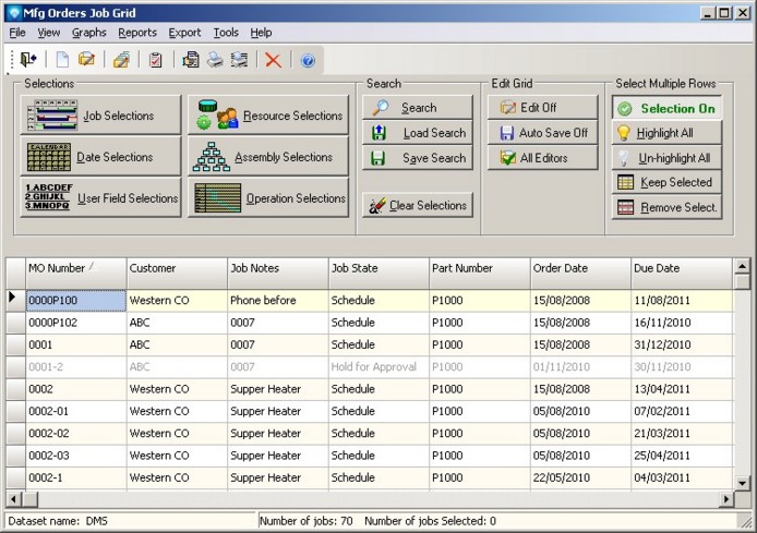 in the top right corner of Mfg Order Job Grid to toggle the selection on as in the example below: