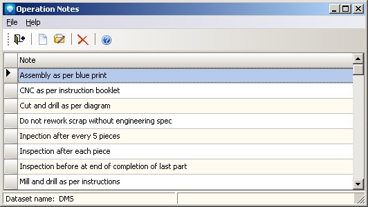 To access Standard Operations Notes, select Tables | Standard Operation Notes. The following window will appear with the list of current standard operation notes: