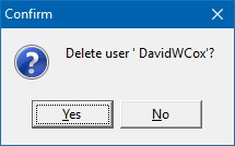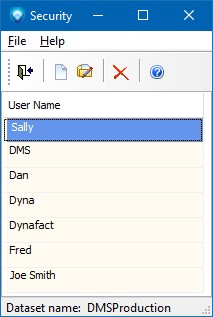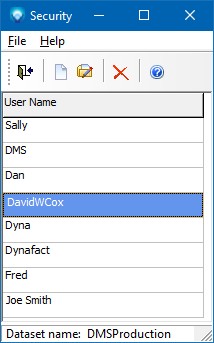From within the User list you can click on File | Delete of the delete icon to delete the existing highlighted user.  For example, to delete David you would highlight the user group and select delete as in: