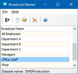 Broadcast Names are used by calendar activities to define who can see the calendar activity. When you add a calendar activity, the activity can be broadcast to users who are a member of a broadcast name. For example, you may have all users on DMS who are managers to be members of the broadcast name "Managers". User passwords is used to assign a broadcast name to a user.