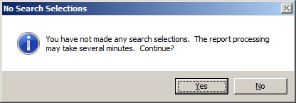 You may continue with the search by selecting Yes or click No to abort the search. The above message will only appear once per session so subsequent searches without search criteria will not display this message.