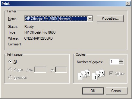 Select the printer name and click OK to print the gird, or press Cancel to cancel the print and exit the print window.