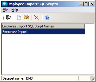A window will appear with the current list of defined employee import SQL scripts. The example below shows the list of current employee scripts: