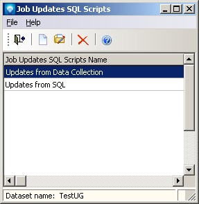 A window will appear with the current list of defined job import SQL scripts. The example below shows the list of Job Updates SQL Scripts: