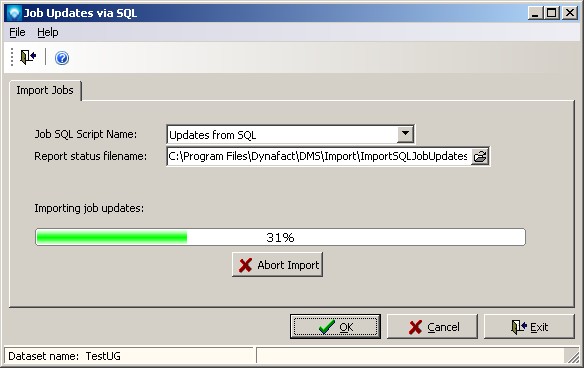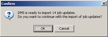 Click OK to start the importing of job updates or click Cancel to cancel the import. If you click OK, DMS will start the import and display the import status on the screen as in the example below: