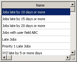 The following example shows the drop down menu from the Load Search window.  The names given to each search are self explanatory and give an example of how to name a search: