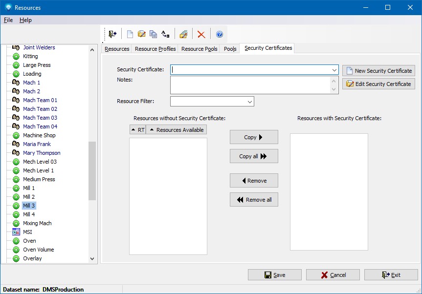 Security Certificates enables you to setup resources that are authorized to work on certain projects. To identify the resources that can work on jobs, the Security Certificates tab in Resources is used.
