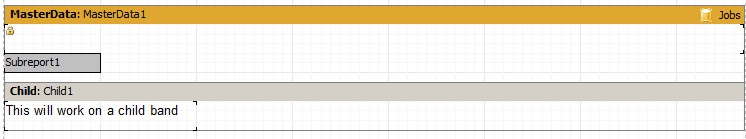 A Child Band is also used when several sub reports must be placed one below the other; use a Child Band for each sub report and chain them together, setting the Child property of Child1 to Child2, and so on.