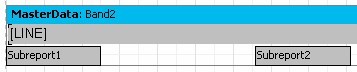 Two or more sub report objects can be placed side-by-side on the same data band as in the example below: