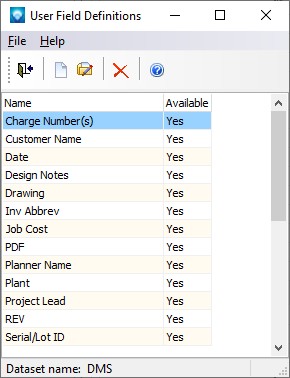 Once a user field has been defined and is used by DMS, it cannot be deleted unless all references to the user field using are assigned to another user field or all references are deleted. Instead of deleting a user field you can make it unavailable for use by unselecting the Available check box.