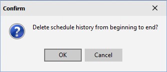 The History tab is used to display the schedule run history as well as the log for each schedule run. Each time the schedule is run, information on the schedule is record in the schedule history. The history is displayed in a gird on the History tab sorted by the most recent schedule run to the oldest schedule run. Periodically you may want to delete the schedule history information for older schedule runs to reduce the amount of information that is displayed in the gird.